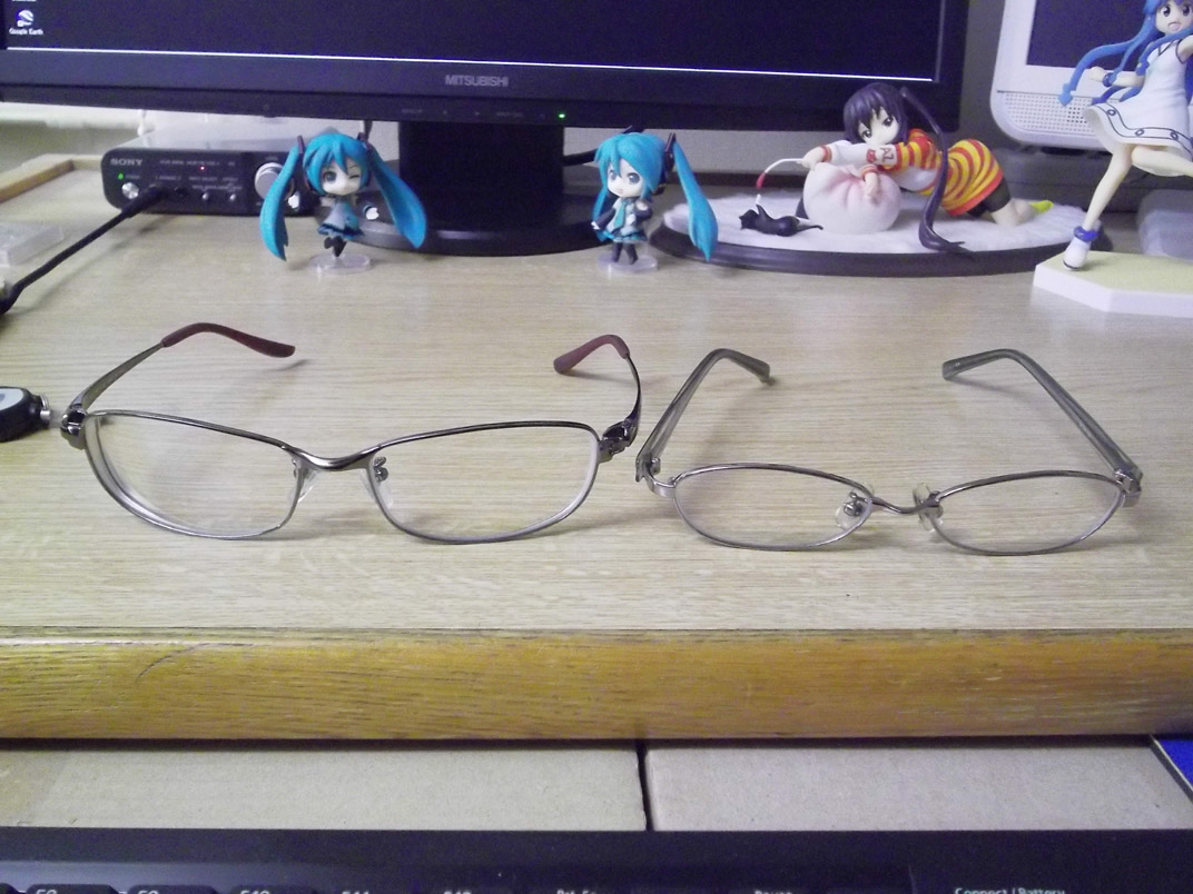 右が今まで使っていた、某量販店のメガネ。