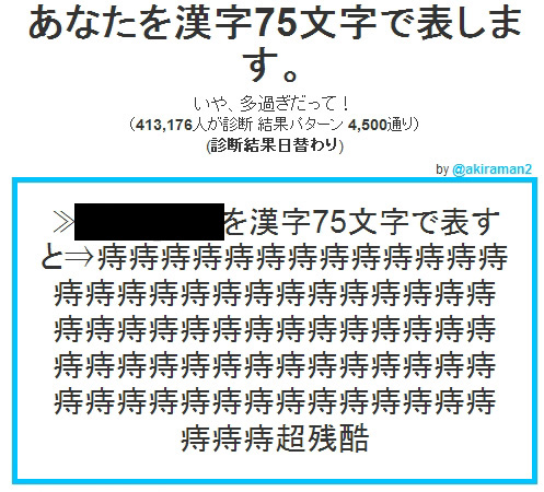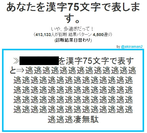 キャラ名を打ち込み、出てきた診断結果が・・・